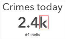 Ein Einheitenpräfix ist ein Symbol oder ein Kürzel, das Maßeinheiten vorangestellt wird, um ein Mehrfaches oder einen Teil einer Einheit anzugeben, z. B. Kilo für Tausend. Wenn Einheitenpräfixe in Dashboards aktiviert sind, werden Symbole der Einheitenpräfixe, z. B. k für Kilo, zum Abkürzen der Zahlen verwendet. Wie durch die Zahlenformatierung können so die dargestellten Informationen vereinfacht und eine Zahl leichter ausgewertet werden. Für den Indikator in der folgenden Abbildung wurden Einheitenpräfixe aktiviert: