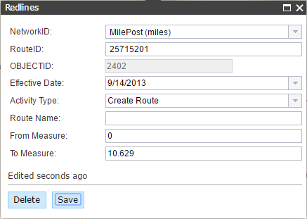 - You can save events on redlines that have Create Route or Reverse Route activity types.