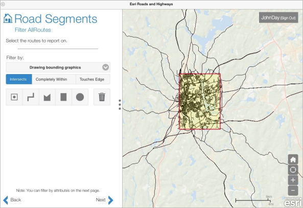 For selecting routes that intersect multiple polygons, complete the following steps.